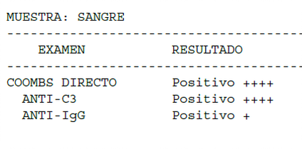 La clínica de acrocianosis ante la exposición al frío asociado a la fuerte positividad de C3d en el Coombs directo, orientan fuertemente hacia una anemia hemolítica por anticuerpos fríos (crioaglutininas). Esta enfermedad se produce en casi todos los casos por anticuerpos tipo IgM que fijan complemento en la superficie del glóbulo rojo. Dado que la prueba se realiza a 37ºC, las moléculas IgM ya no se encuentran adheridas y solo se ve la consecuencia, que son las moléculas de C3d. La presencia de positividad débil en IgG se describe en hasta un 20% de estos casos.