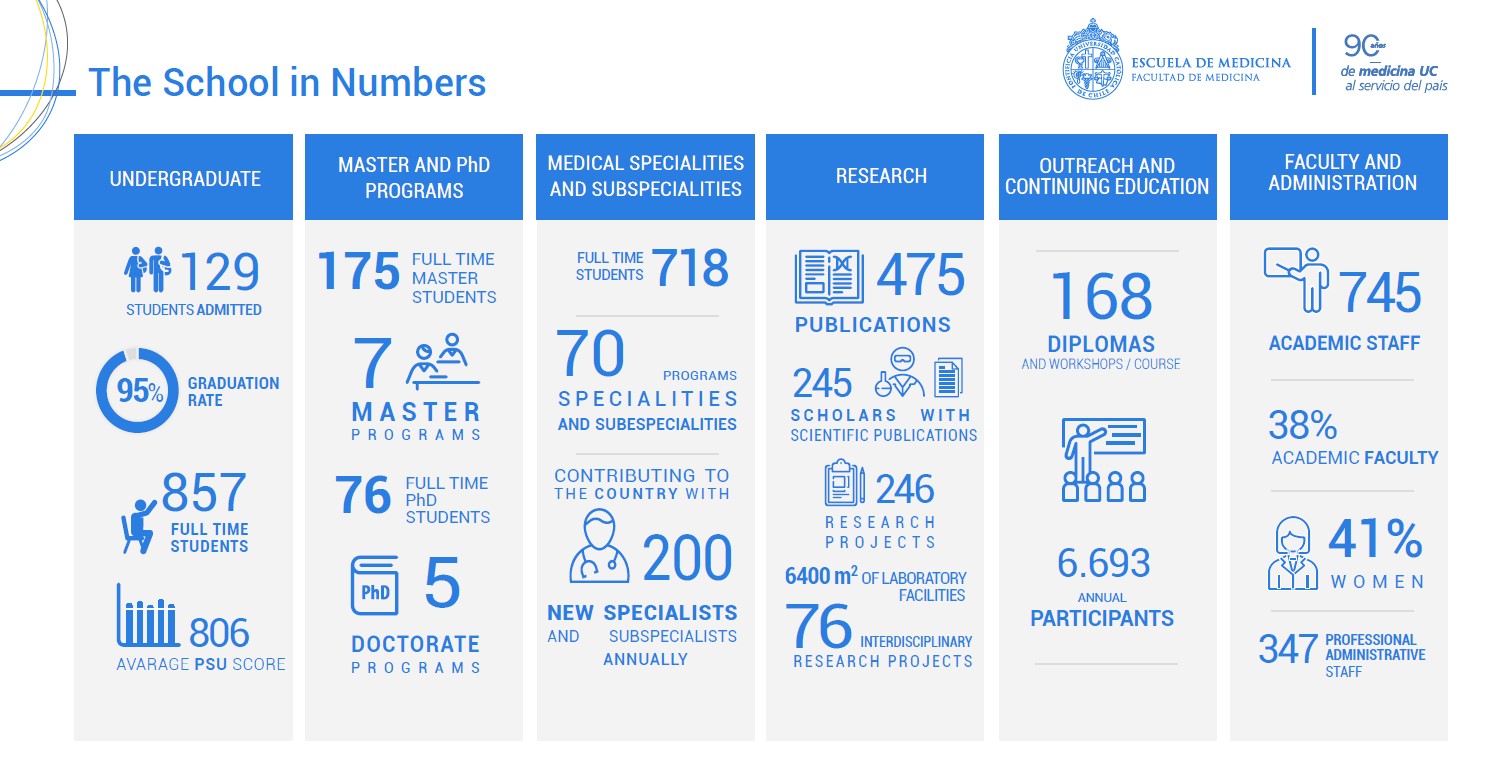 Considered to be one of Chile’s most prestigious medical schools, UC’s School of Medicine leads with an excellence in teaching, innovation and health care while maintaining a primary focus in global citizenship.