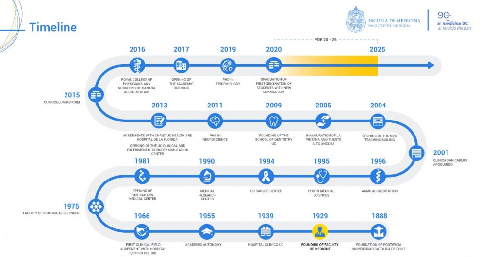 The School of Medicine of the Pontificia Universidad Católica de Chile opened its classrooms on May 1, 1930, offering its inaugural class to the first generation of future doctors. Since then, it has attained the highest standards in the training of physicians and specialists in Chile and Latin America.