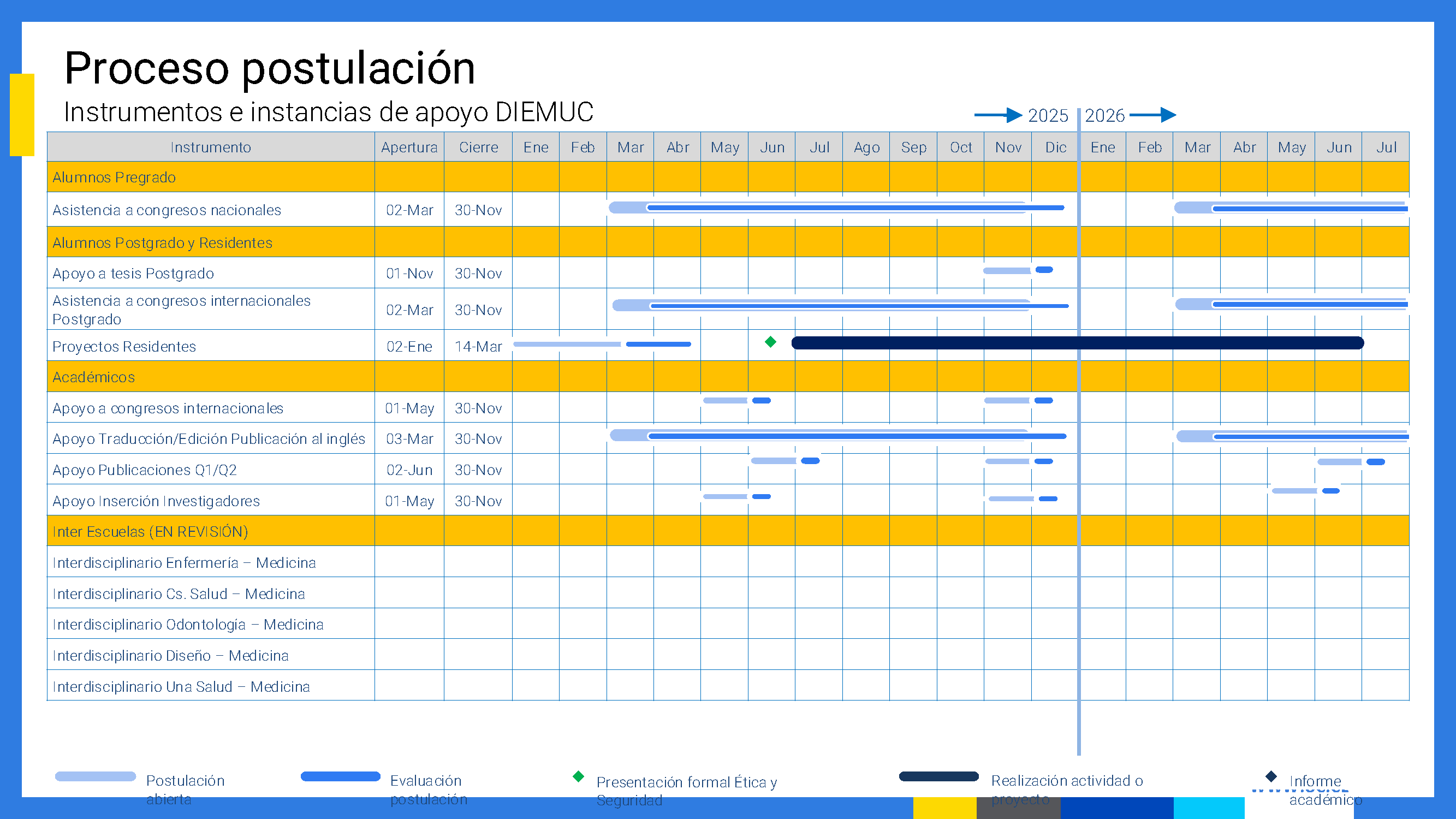 Los fondos concursables están destinados a apoyar proyectos de alumnos de pregrado, post grado, becados-residentes y académicos, fomentando la interdisciplina entre los investigadores de la Facultad de Medicina.