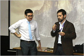 Asimismo hizo alusión a lo que ha sido su trayectoria, para llegar a desarrollar lo que ahora lo tiene muy motivado que es el proyecto Endodrone. “Esta es mi cuarta presentación en Chile, pero creo que es la más personal que he hecho, para mi es la más significativa porque primero, yo estuve sentado en los mismos asientos donde están sentados ustedes, me inspiraron profesores en ese tiempo, y me gustaría también inspirarlos un poquito para mostrarles la experiencia. En cuanto al futuro del proyecto Endodrone, yo soy becario de Conicyt, eso significa que si o si tengo que volver a Chile, razones familiares, hay un montón de razones de por qué quiero volver a Chile y obviamente volver a Chile no va a ser algo simple, sobre todo si vengo con una idea tan loca como esta, pero bueno, he estado haciendo cosas locas por harto tiempo así que lo primero es conseguirme un buen equipo, eso es lo que he estado haciendo en las últimas semanas, he estado hablando con ingenieros, con físicos de acá para tratar de armar un equipo en donde pueda realizar proyectos como éste”, comentó al finalizar su presentación.