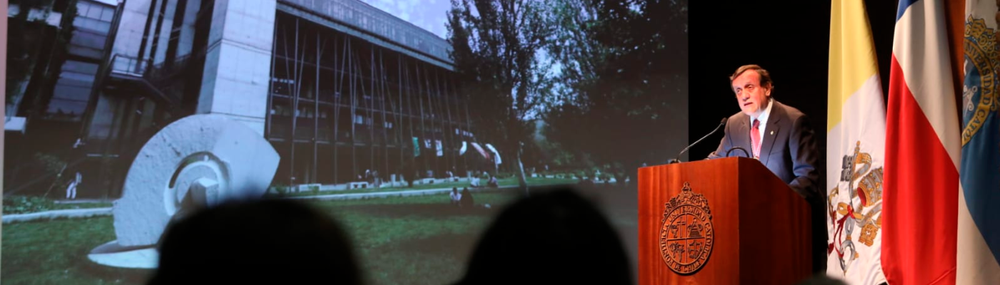 El pasado 24 de junio la Universidad Católica celebró sus 134 años en una ceremonia que -luego de dos años de transmisión telemática- este año volvió a realizarse presencial en el Salón Juan Francisco Fresno del Centro de Extensión, y como es tradición, ésta se llevó a cabo en el Día del Sagrado Corazón, patrono de nuestra casa de estudios.