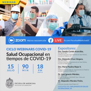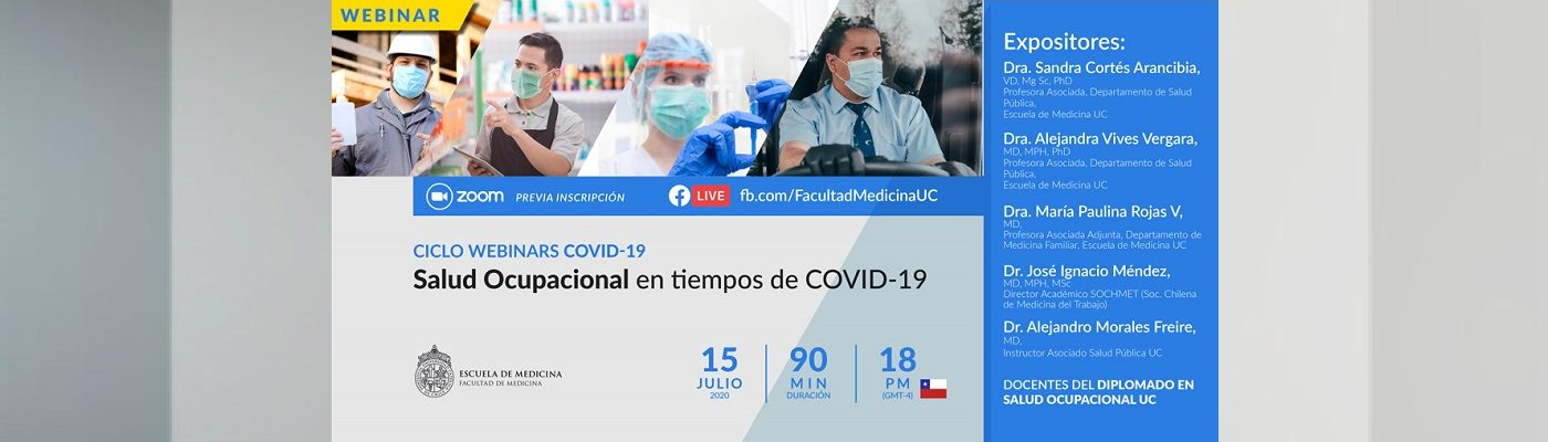 Este miércoles 15 de julio a las 18:00 horas (GMT-4) el equipo docente del Diplomado de Salud Ocupacional UC realizará un webinar para discutir sobre diversas experiencias y aristas que permitan una mejor comprensión de las herramientas de la salud ocupacional en el contexto de la pandemia por Covid-19.