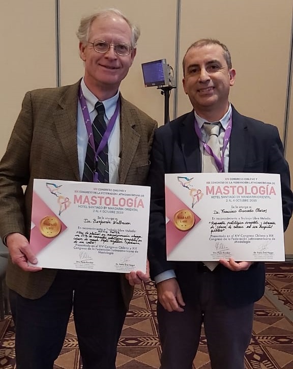 El trabajo «Respuesta patológica completa y sobrevida de cáncer de mama en un hospital público» liderado por el Dr. Acevedo fue el ganador del Premio Pfizer SABCS 2019: “Este estudio muestra que aquellas pacientes con cáncer de mama que reciben quimioterapia antes de la cirugía y logran que desaparezca todo el tumor al momento de la cirugía, presentan mejor sobrevida global, especialmente en subgrupos más agresivos de cáncer de mama”.