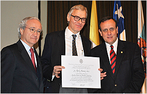 El Dr. Ignacio Sánchez, Rector de la Pontificia Universidad Católica de Chile; y el Dr. Luis Ibáñez, Decano de la Facultad de Medicina de la misma casa de estudios, hicieron entrega de esta distinción al Presidente de la Sociedad DOHaD, y académico de la Universidad de Southampton en Inglaterra, quien ha tenido una larga trayectoria de colaboración en investigaciones junto a docentes de nuestra institución.
