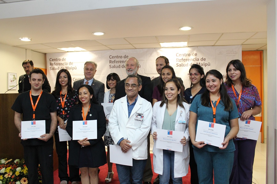 Con la presencia del ministro de salud, Emilio Santelices, se realizó la entrega de diplomas a once funcionarios del Centro de Referencia de Salud (CRS) de Maipú que participaron del curso UC “Evaluación y Manejo de Problemas Complejos en la Atención Geriátrica Ambulatoria”.