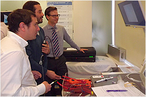 Especialista que participa en el curso aplica sus conocimiento de endourología.La primera parte del curso contó con un entrenamiento en el Centro de Simulación UC donde urólogos de todo Chile participaron en actividades en cajas de laparoscopía y endoscopía ingresando con pequeños filamentos de fibra óptica al interior de riñones todo esto siendo visto a través de una microcámara en un monitor. Urólogos de Santiago y regiones contarán con entrenamiento práctico de primer nivel y módulos teóricos sobre cálculos renales y sus tratamientos.