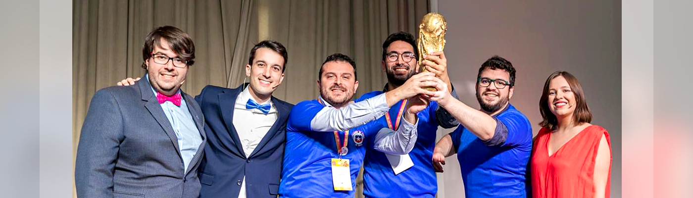Los residentes Javier Pinochet, Sergio Rojas y Rodolfo Garretón participaron del concurso trivia de conocimientos, donde debieron competir frente a los equipos de España, Paraguay, Uruguay, México, Argentina, Ecuador y Perú.