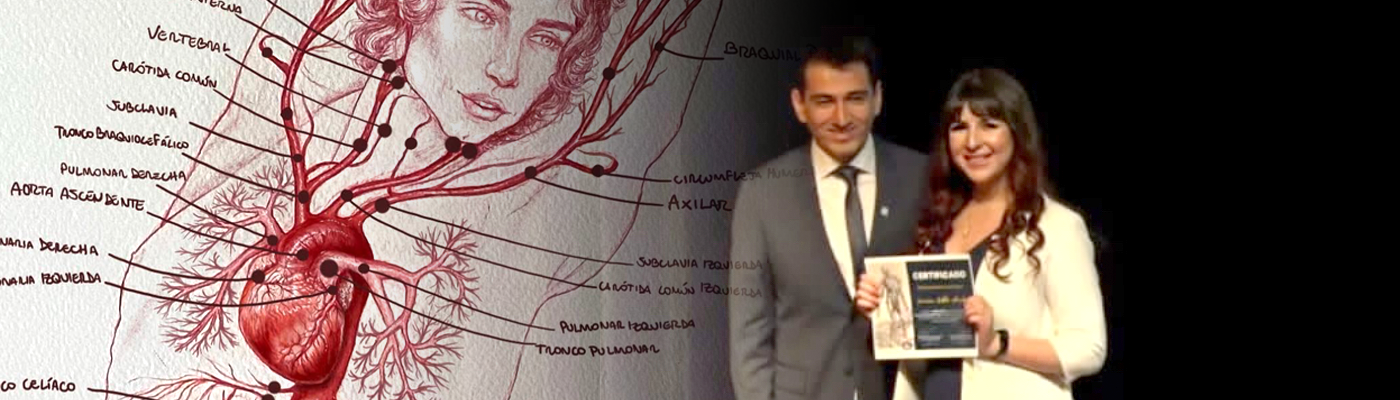 La alumna de 5to año de Medicina, Francisca Castillo, obtuvo el primer lugar con su obra “In Pulso: cartografía arterial del cuerpo humano”, utilizando papel Canson y rotulado con procrearte. “Mi obra está inspirada en el cuerpo de un bailarín en movimiento. Quise desarrollar una obra y técnica muy poco utilizada, que implicará un desafío personal, pero a la vez, logrará plasmar todos los detalles del cuerpo. Dibujar los detalles de las arterias, de los órganos, y de cómo estos se visualizan al realizar movimientos, y el resultado me encantó, logré crear una imagen tridimensional».