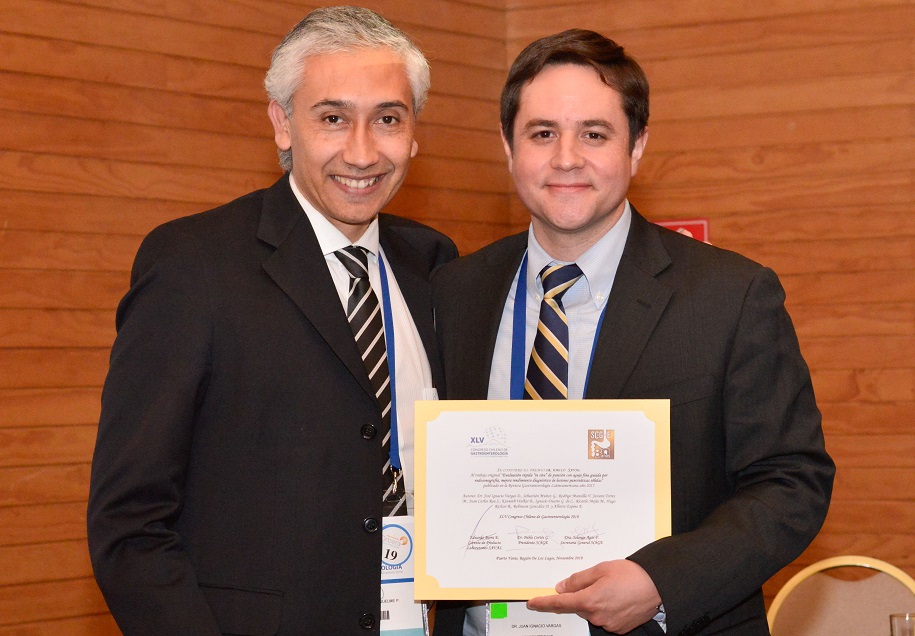 “Quiero destacar al Dr. Juan Pablo Arab, quien recibió 3 premios (Investigador Joven, Mejor trabajo presentado en el Congreso y Mejor trabajo en el área de la Hepatología) lo que constituye una situación inédita, y al Dr. José Ignacio Vargas quien recibió el premio al Mejor trabajo publicado en la Revista Gastroenterología Latinoamericana”, comentó el Dr. Marco Arrese, jefe del Departamento de Gastroenterología UC.