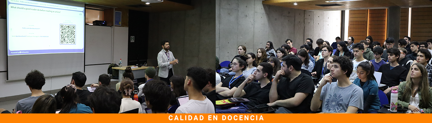 En el marco del curso ‘Neurociencias Clínicas’, dirigido a estudiantes de 4to año de Pregrado de la Escuela de Medicina UC, el Dr. David Aceituno dictó una clase el pasado 12 de agosto utilizando la metodología Content and Language Integrated Learning (CLIL), que promueve la enseñanza de un idioma extranjero por medio de un contenido adaptado a dicha lengua. En este caso, el docente, quien se capacitó en English UC, utilizó el idioma inglés para enseñarle a los alumnos a leer artículos científicos relacionados con la salud mental.
