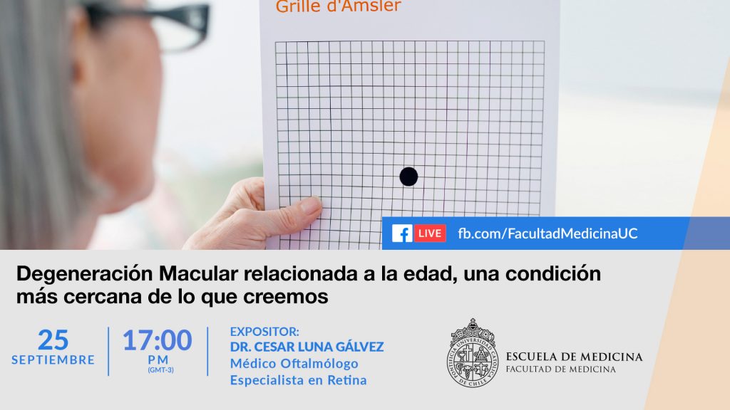 Este viernes 25 de septiembre a las 17.00, el doctor César Luna, oftalmólogo de la Escuela de Medicina UC, estará transmitiendo a través de un Facebook Live sobre la degeneración macular.