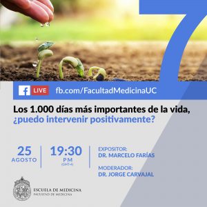 La charla llamada “Los 1.000 días más importantes de la vida, ¿puedo intervenir positivamente?” se realizará este martes 25 de agosto a las 19.30 horas en vivo a través del Facebook de la Facultad de Medicina UC. En la instancia también se resolverán dudas de la audiencia.