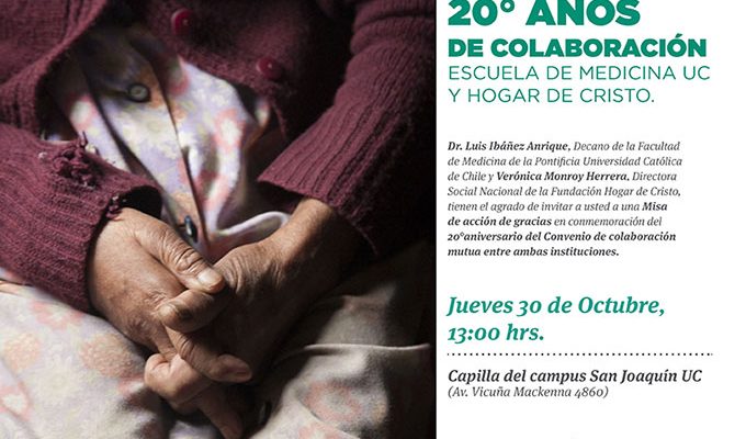 El próximo jueves 30 de octubre se realizará una misa de acción de gracias en la capilla del Campus San Joaquín a las 13.00 hrs., para celebrar este vínculo y compromiso solidario con el que más sufre. Quedan todos cordialmente invitados.