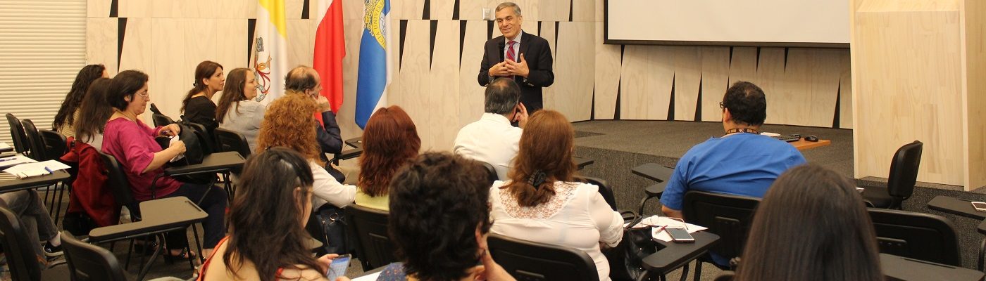 Los cuidados paliativos “miran a la persona que padece una enfermedad incurable, con diversas necesidades derivadas de esta condición, en forma multidimensional, en equipos que deben ser interdisciplinarios de tal manera que las soluciones o respuestas que se den sean integrales”, comentó el Dr. Eduardo Valenzuela, académico de Geriatría UC y Coordinador del Convenio entre la Facultad de Medicina UC y Hogar de Cristo.