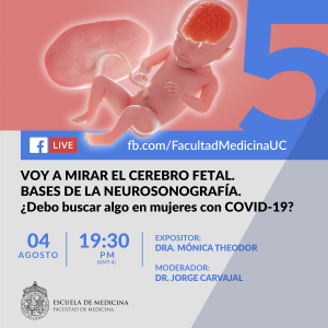Todos los martes a las 19.30 horas distintos académicos de la División de Gineco-Obstetricia UC hacen diversas ponencias en relación a la especialidad, y este martes 4 de agosto será el turno de la Dra. Mónica Theodor, quien dictará la charla «Voy a mirar el cerebro fetal. Bases de la neurosonografía. ¿Debo buscar algo en mujeres con COVID-19?».