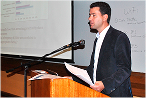 Decano Ibáñez da bienvenida a académicos, alumnos e investigadores, representantes de las universidades que integran el Grupo de Ciencias de la Salud Universitas U21