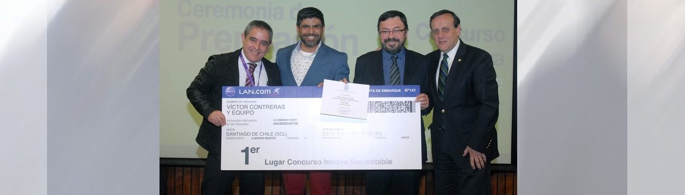 El equipo de la División de Anestesiología de la Escuela de Medicina UC, conformado por EU. Víctor Contreras, Dr. Ricardo Fuentes, Sr. Osman Casanueva, EU. Constanza Barros y EU. Gabriela Barrueto, fue uno de los dos grandes ganadores del Concurso Innova Sustentable, con el proyecto “Programa Hospitales Verdes y Saludables: Reciclaje en Pabellón”.