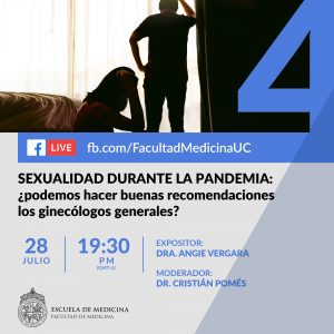 Este martes 28 de julio a las 19.30 horas, la División de Gineco-Obstetricia realizará su cuarta jornada a través del Facebook de la Facultad de Medicina UC, donde los asistentes además de escuchar la ponencia de la Dra. Angie Vergara podrán ir haciendo preguntas en relación al tema tratado.