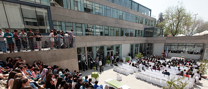 Cerca de 300 miembros de la comunidad universitaria asistieron a la inauguración de los dos inmuebles que se erigen en el sector sur-oriente del Campus San Joaquín, el miércoles 9 de octubre al mediodía. Por un lado el Edificio de Ciencias de la Salud, en sus cuatro niveles y en esta primera etapa, pone en funcionamiento salas para seminarios, estudio, estar para estudiantes, computación, espacio para el centro de alumnos y laboratorios docentes de las carreras de Kinesiología y Nutrición de la Facultad de Medicina.