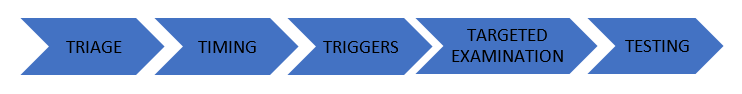 TRIGGERS implica buscar gatillos en el caso de episodios. Si no hay gatillos se consideran episodios espontáneos, pero si existen estos deben ser detallados ya que dependiendo del tipo de gatillo se puede correlacionar a algunas patologías en particular (ej. posicional, trauma). Aquí es muy importante hacer la diferencia entre “gatillar” y “agravar”: los gatillos hacen aparecer el síntoma cuando basalmente no hay vértigo, mientras que el empeoramiento ocurre sobre una sensación de vértigo basal (constante).9