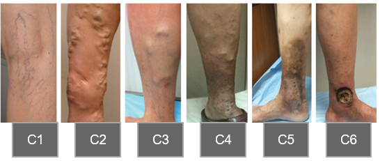 Fig 3. Ejemplos de clasificación C, de CEAP desde C1 a C6.
