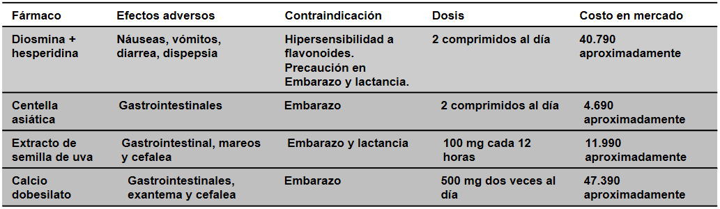 Algunos ejemplos de fármacos venoactivos y algunas características aparecen en la Tabla 2.