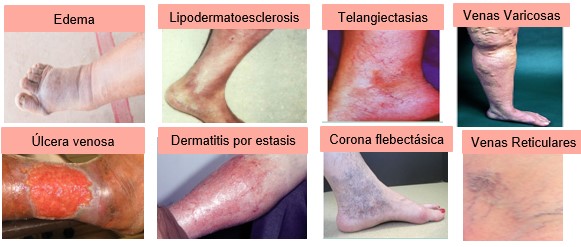 En las siguientes imágenes se muestran los principales signos de insuficiencia venosa crónica.