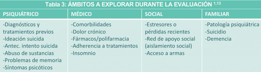 Es importante consignar una serie de antecedentes como parte de la evaluación integral de los adultos mayores con depresión (ver Tabla 3). Se sugiere intentar siempre un abordaje familiar entrevistando a un acompañante por posible bajo reporte de síntomas depresivos y/o alteraciones de memoria. 1,13