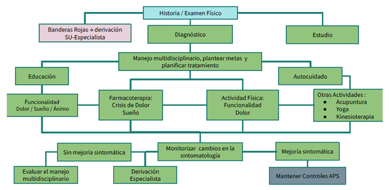 Los pilares más importantes del manejo son el tratamiento no farmacológico y el enfoque preventivo, rescatando el tratamiento farmacológico para los momentos de mayor dolor o dolor descontrolado.