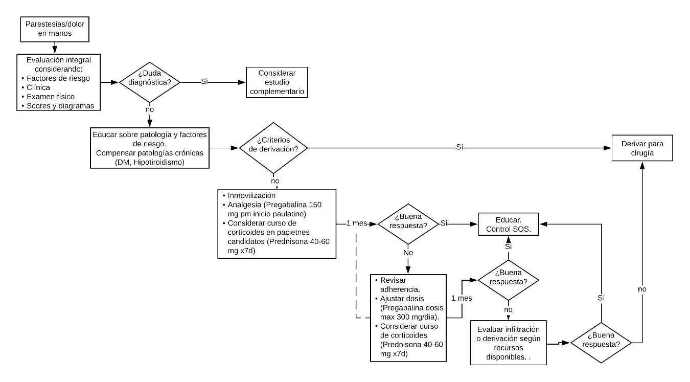 El síndrome de túnel carpiano (STC) se presenta en aproximadamente 3% de la población. Su diagnóstico puede ser un desafío debido al escaso conceso respecto al gold estándar diagnóstico. En el siguiente artículo abordaremos elementos claves del diagnóstico y tratamiento inicial.