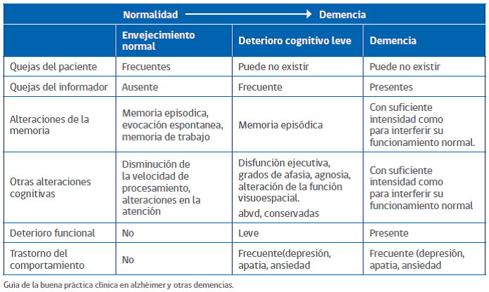 El DSM V define la demencia como un trastorno neurocognitivo mayor, en el que existe evidencia de un declive cognitivo significativo comparado con el nivel previo de rendimiento en uno o más dominios cognitivos (atención compleja, función ejecutiva, aprendizaje y memoria, lenguaje, habilidad perceptual motora o cognición social) que puede estar basado en la preocupación del propio individuo, en un informante que le conoce o en el clínico. Este declive en la función cognitiva debe estar preferentemente documentado por un test neuropsicológico estandarizado o, en su defecto, por otra evaluación clínica cuantitativa6.