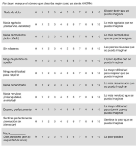 Figura 2. Cuestionario Edmonton Symptom Assessment System (ESAS)22