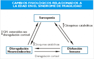 Se considera que algunos cambios fisiológicos asociados al envejecimiento podrían ser centrales al origen del síndrome, disfunción imune caracterizada por un estado proinflamatorio, disregulación neuroendocrina y sarcopenia (1).