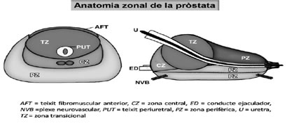 El modelo anatómico que actualmente se acepta distingue cuatro zonas en la próstata (ver figura 1):