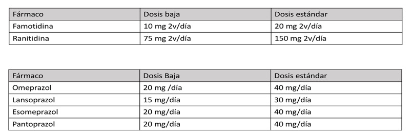 Tabla 1: Dosis habituales de IBP y ARH2