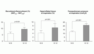 Finalmente, Jaime Retamal de nuestro grupo hizo un elegante estudio fisiológico con tomografía computarizada en 10 pacientes con SDRA. La reducción del Vt de 6 a 4 ml/kg IBW redujo las presiones inspiratorias, la hiperinflación y la apertura y cierre alveolar cíclicos. El aumento en la PaCO2 y la acidosis se previno en forma exitosa en todos los pacientes disminuyendo el espacio muerto instrumental [8].